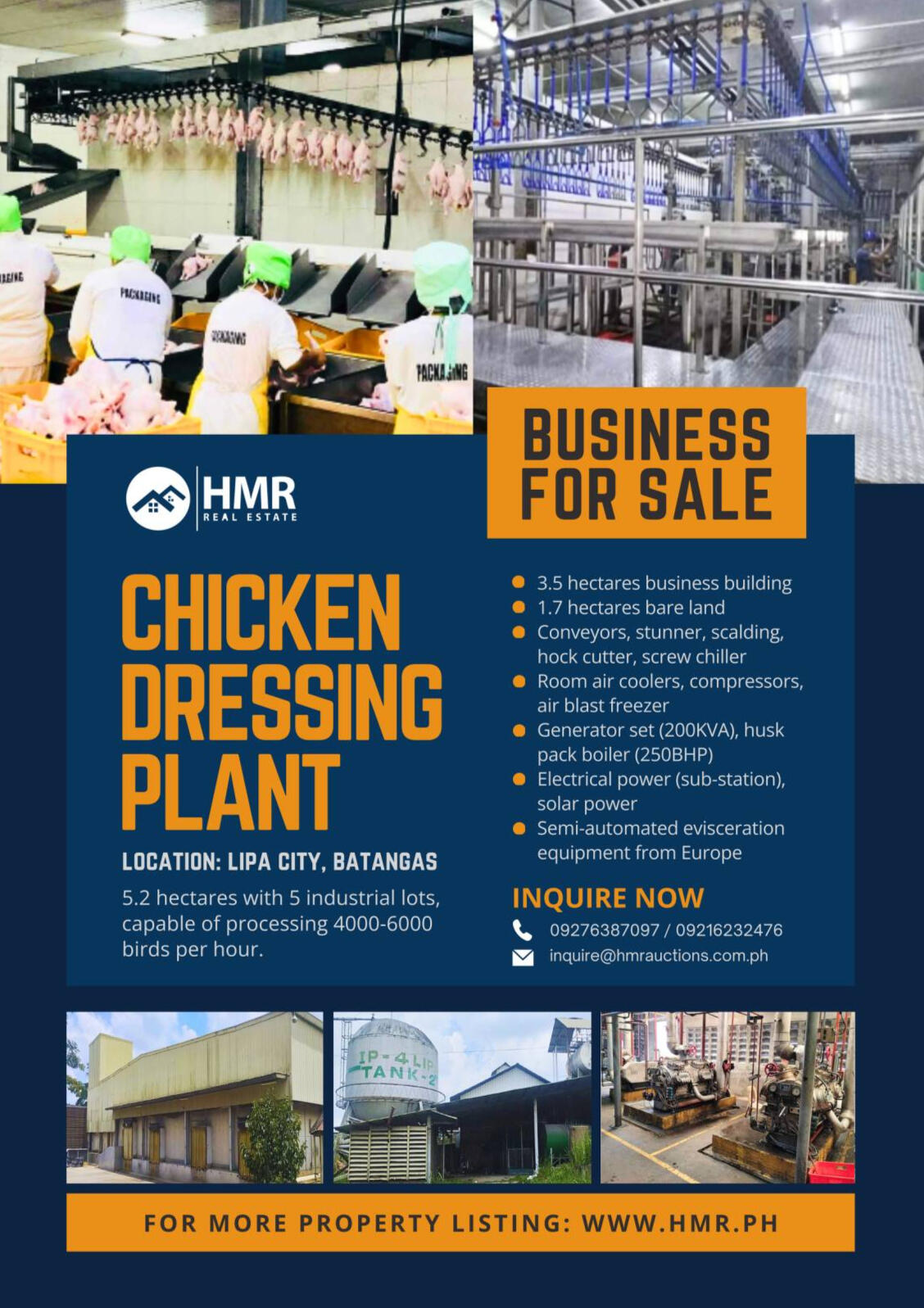 5.2 hectares with 5 industrial lots, capable of processing 4000-6000 birds per hour.Inquire now: 09276387097 / 09216232476